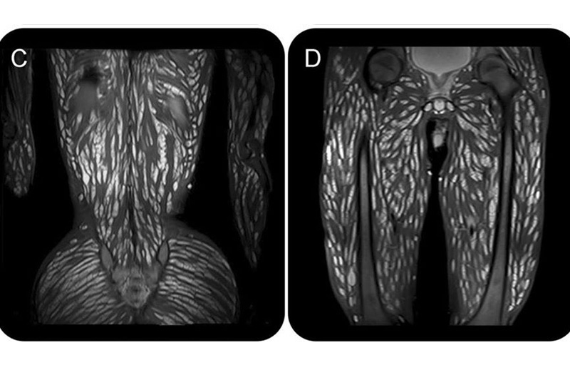 據外媒報道,泰國蘇拉納里科技大學醫學院寄生蟲研究中心(PDRC)在專頁分享一個病例,在病患的磁力共振掃瞄中,看到全身的白色小點,原來全是豬肉絛蟲(Pork tapeworm), 其腦部組織、頭頸、胸腹、側肌、脊柱、臀部、骨盆、四肢肌肉都有大量囊腫,確診患上囊尾蚴病。