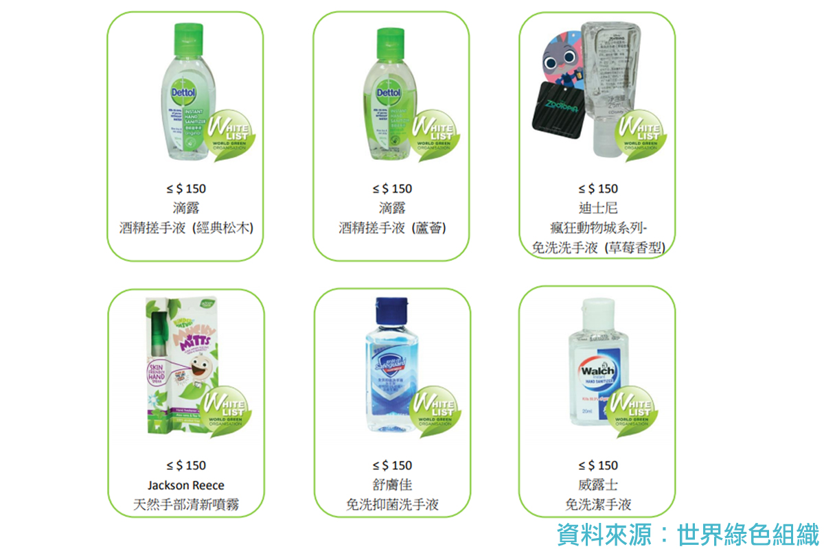 世界綠色組織測試市面上的搓手液,以上為通過測試品牌。