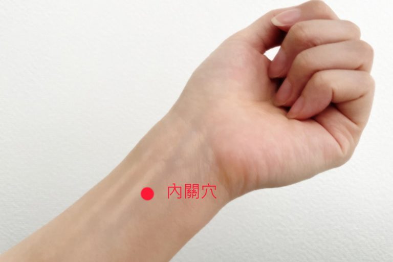 內關意謂內臟出入的主要位置,屬手厥陰心包經,可舒緩心悸、心痛、胃痛、嘔吐、上肢痹痛、眩暈等,亦有寧心安神、舒緩緊張的效果。