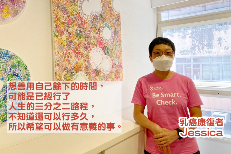 最令Jessica深刻的是定期收到義工的電話,設身處地關心她的工作及康復情況,使她感到非常窩心。後來基因測試報告結果,Jessica可不需要接受化療。隨後生活漸漸復軌,她並沒有忘記基金會的幫助,「當時會把農曆新年收到的利是捐予基金會作回饋,希望更多同路人受惠。」