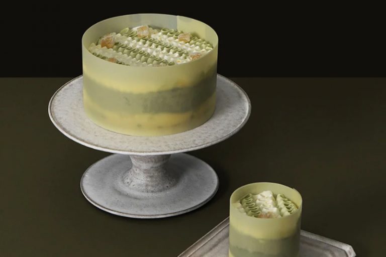 開心果檸檬純素慕絲蛋糕 Blooming 5"(HK$520)像花蕾般的優雅外形,承載着濃厚開心果與檸檬的配搭,一口氛芳,一口馥郁。頂層點綴的方形檸檬軟糖為整個滑順慕絲口感帶來不一樣的口感。