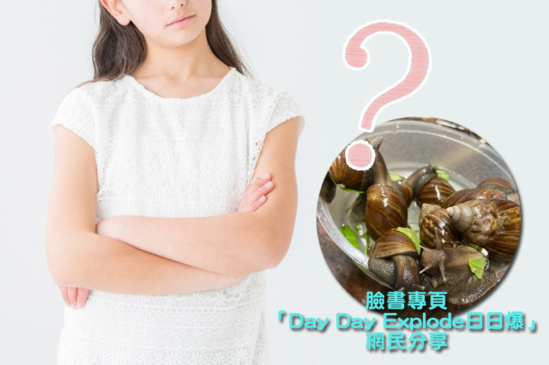 臉書專頁「Day Day Explode日日爆」近日有化名「同事伯友」的網友分享投稿,表示來自大埔、同事的母親稱於樓下公園把野生蝸牛執回家,有意煮成法國蝸牛,之後又打電話問朋友,一齊商討如何把蝸牛處置,如是者這些蝸牛繼續放了在家中數天。