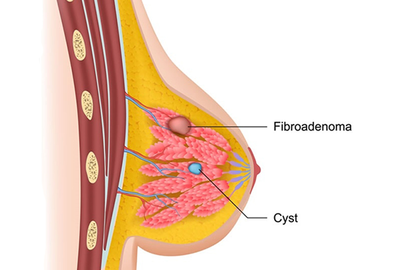 台灣外科醫生林惠鈺在電視節目《醫師好辣》分享,一名女生因乳房持續疼痛,擔心自己會像母親及外婆一樣患上乳癌,於是求醫。林醫生為她檢查時,發現女生兩邊乳房所有地方都會疼痛,與一般乳癌情況並不相符,進行超聲波檢查後就發現,女生的兩邊乳房都佈滿了「水泡、結節」,在香港則稱為囊腫。正正就是這些增生組織,引發乳房的疼痛。