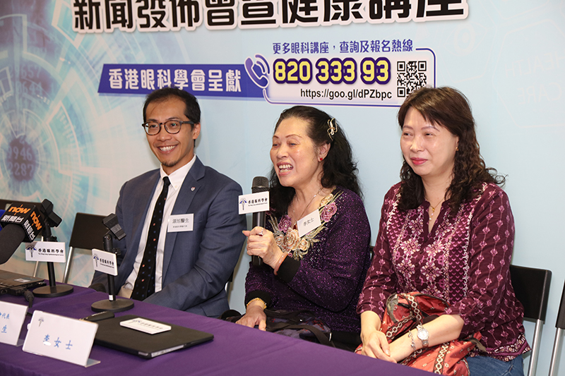 現年75歲的李女士,左眼曾進行白內障手術,並患有角膜併發症。因眼角膜及白內障問題,右眼亦於3年前開始出現間中眼矇。病發時,雙眼視力模糊,左右眼均只剩下約5%視力,日常生活受到影響。
