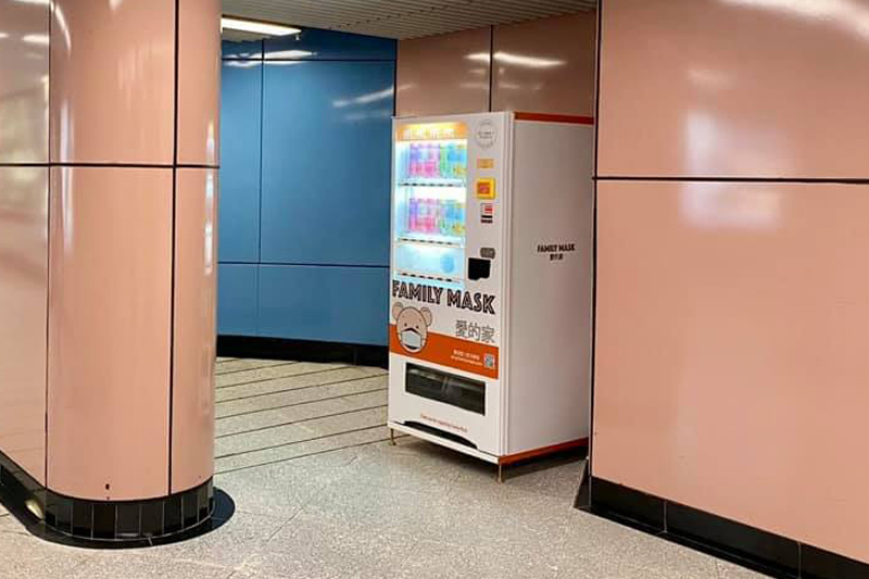 港鐵於其臉書專頁公布,於本月會陸續於轄下14個港鐵車站口罩設置自動口罩售賣機,而兩部口罩機分別於九龍塘站及調景嶺站率先投入服務。從官方公布的相片可見,相關口罩品牌是「屈臣氏」及「愛的家」。