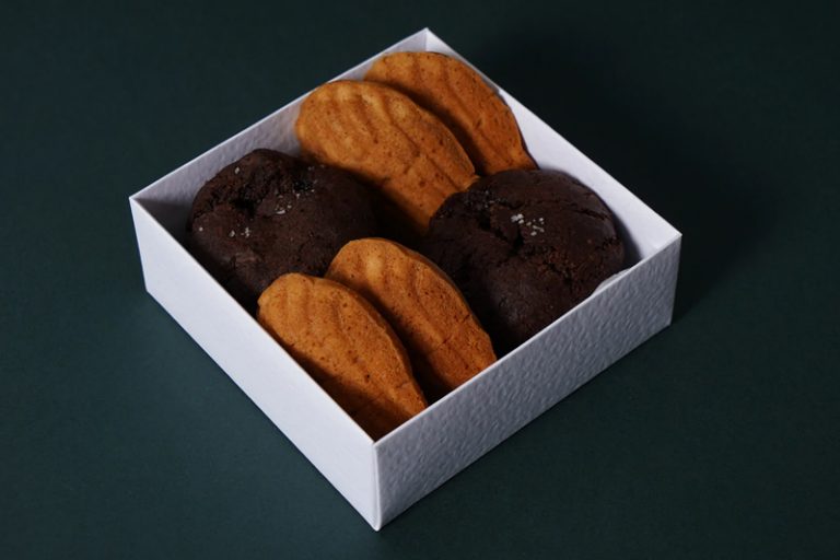 moono純素常溫菓子禮盒(8件裝/ HK$286),常溫菓子依舊採用自家製純素牛油,無添加任何香精。品牌推介檸檬蜂蜜的經典口味。清香的檸檬香氣配上加拿大楓糖,口感柔軟細膩帶點清新。而軟曲奇加入大量可可粉、黑朱古力及焦糖炒胡桃,曲奇正中灑上鹽之花,讓整體濃郁而不膩。