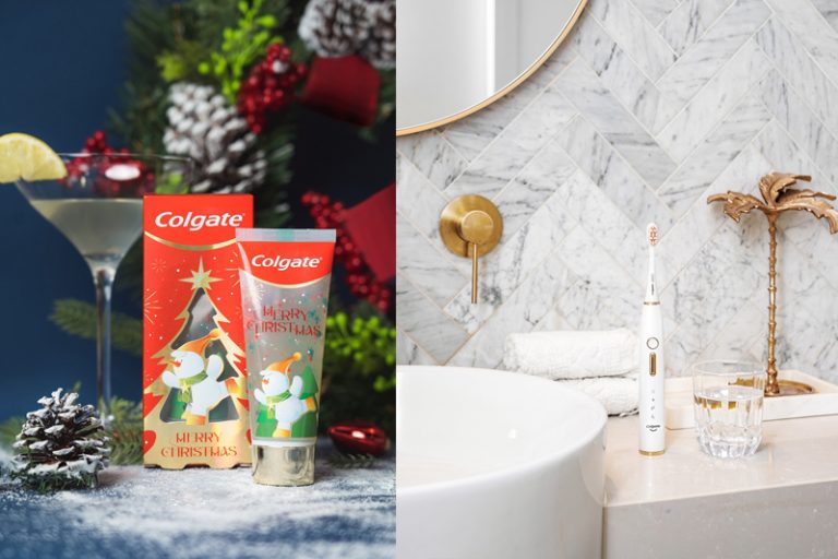 高露潔於今個聖誕帶來節日限定聖誕樹閃片牙膏(HKD$49.9),牙膏內更有綠色聖誕樹和紅色聖誕花閃片,配合超特別雜果賓治口味,加上印有可愛雪人的包裝設計盒,盒面可寫上個人化的祝福字句,由每天起床刷牙開始就充滿夢幻儀式感,好好迎接聖誕。搭配Glint聲波電動牙刷(HK$599),高貴設計同時實用性高,讓你盛裝打扮時再以健康雪白牙齒見人。入手高露潔1+1送禮自用夢幻配搭,好好寵愛自己之餘,亦將最貼心禮物送給最好閨蜜。節日限定優惠