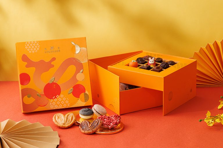 同慶2023年新春,龍島推出一系列以「Blooming Glamour」為主題的新春限定賀歲禮盒,每款禮盒的包裝都別具心思,盛載著滿滿的祝福。吉慶滿滿新春瑰麗禮盒(HK$539/盒)設計有如一個寶箱的雙層禮盒,橙色的包裝配上桔子圖案,寓意大吉大利,絕對是送禮之選。打開一看,盡是龍島精心挑選的瑰寶,上層盛載著9款不同口味的龍島手工朱古力 ,下層分別是5款不同口味的招牌馬卡龍曲奇及千層酥,最適合於新春佳節與親友共享。