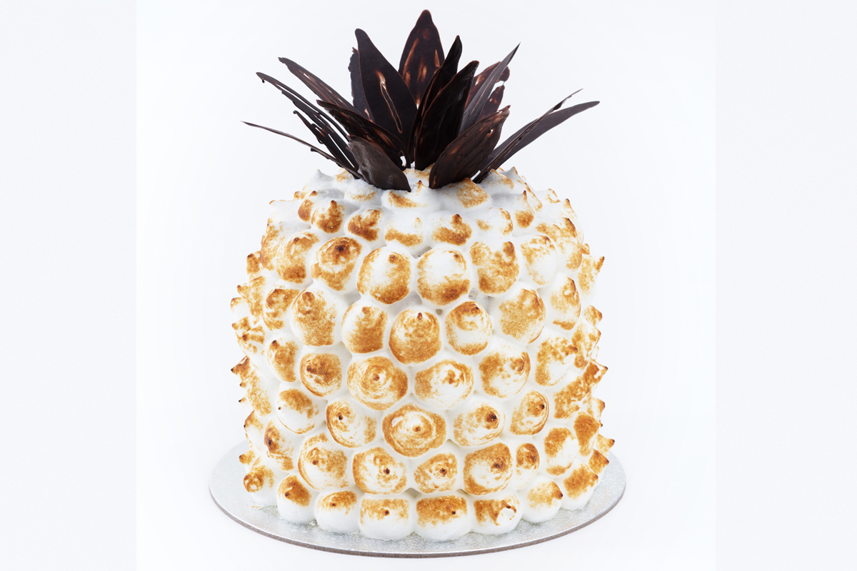 形狀猶如菠蘿的Aloha由一層層無麩質海棉蛋糕和菠蘿片所砌成,外層則被意大利蛋白糖霜覆蓋著,甚有層次感。而頂部則是以朱古力製成的菠蘿葉,整體看起來相當別緻,最適合愛新奇玩味的伴侶。