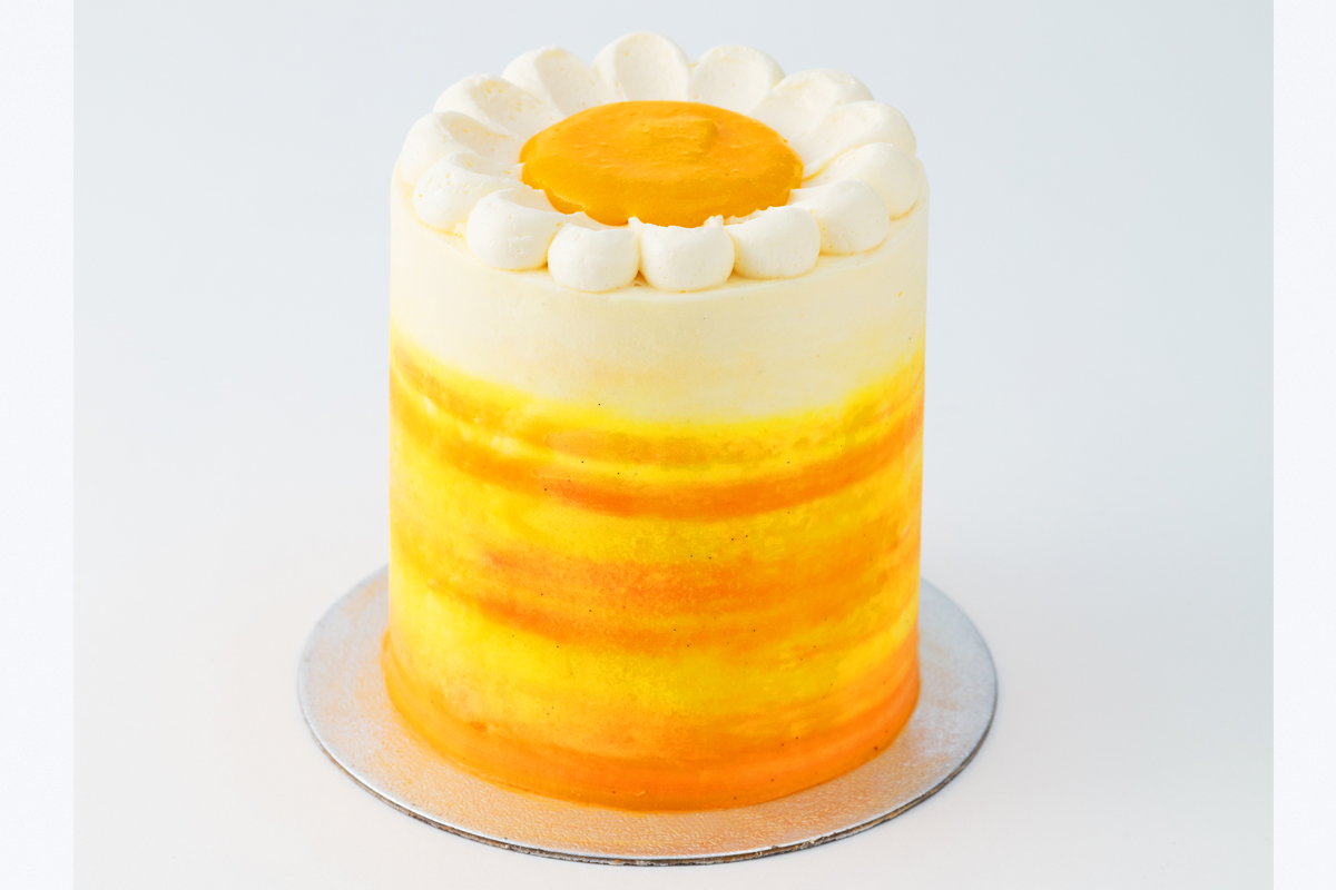 今年情人節是平日,若因工作關係,不能親自跟情人看日落,那便送一個「日落蛋糕」給他/她吧!無麩質芒果醬夾心蛋糕外面抺上一層層的黃色,看上去跟真正的黃昏有八分相似,非常浪漫。