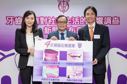學會會長、牙齒矯正科專科醫生梁訓成(上圖中)說,矯齒並無年齡限制,只要你想擁有整齊的牙齒和自信的笑容,就可以接受矯齒治療;治療最佳時機在長出所有恆齒之前,故建議兒童在7歲前進行一次顎骨及牙齒情況分析,評估是否需要接受牙齒矯正治療。