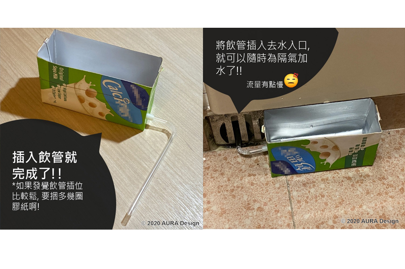 有裝修達人「AURA Design 雅諾設計及工程」在網上教路,只需要準備一個已洗乾淨的紙包飲品盒、膠紙和剪刀,便可以簡單地完成注水器,幫助去水渠保持貯水。