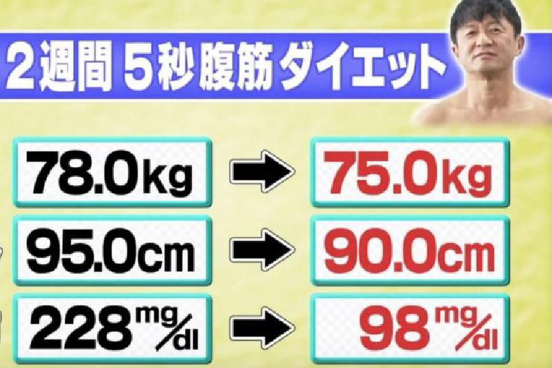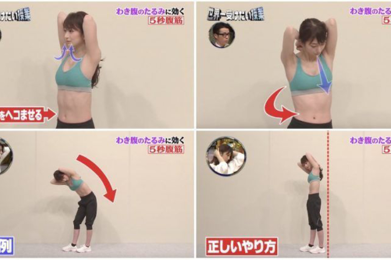 日本節目「世界一受けたい授業」(世界第一授課)便介紹了神奇的「5秒腹肌鍛鍊法」,毋須節食,不必購買健身器材。只要持續進行2星期,已有明顯成效﹗
