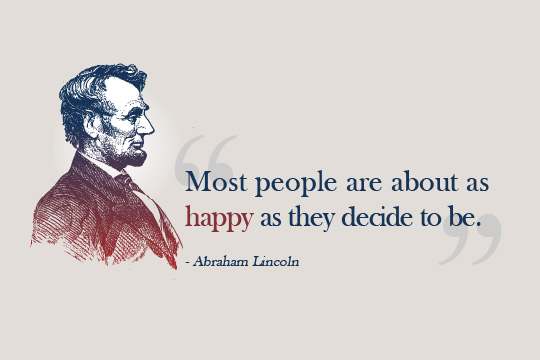 美國總統林肯對快樂曾有這樣的看法:「人快樂的程度多半是自己決定的。」事實上,很多時候人感到快樂或不快樂,與事情的處境未必有必然的關係,亦遠不及我們對事情的反應來得重要。