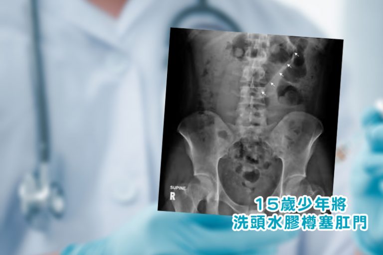 另一個案則涉及一名15歲少年,在2020年5月,疫情停課期間,為紓緩便秘問題,誤信網上「偏方」,將洗頭水膠樽塞入肛門,希望有助腸道蠕動。男童翌日到急症室求醫,當時未出現腹痛、直腸出血或發燒。經X光檢查後顯示,洗頭水膠樽在橫結腸區域附近,需要留院一晚進行觀察,其後可以自行排出洗頭水膠樽。醫護人員教導該男童培養良好飲食習慣及正確服用瀉藥。