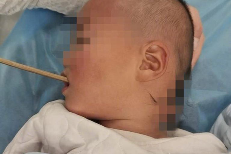 照顧小朋友,大人真的要特別留神,有時看少一眼都會出事。近日,在江蘇淮安有一名2歲9個月大的幼童林林(化名),祖母切了蘋果,但又怕孩子用手拿不衛生,於是用筷子插着給林林吃,然而轉身入屋拿東西,林林亦騎着兒童三輪車出去玩,可是途中翻車倒地,導致筷子插進嘴巴去,從側面更可看到筷子頭於後頸部凸出的情況。