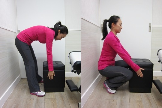 王俊華脊醫說,搬重物時應把腳、膝先彎曲下蹲,保持腰背挺直,再將物品慢慢拿起,近似男士向女士求婚時單膝下跪的姿勢。切勿彎腰提起物品(如上右圖)。此外,物品離身體愈近,腰部愈省力,也愈不容易受傷;搬重物時不要憋氣,速度亦切勿過快。