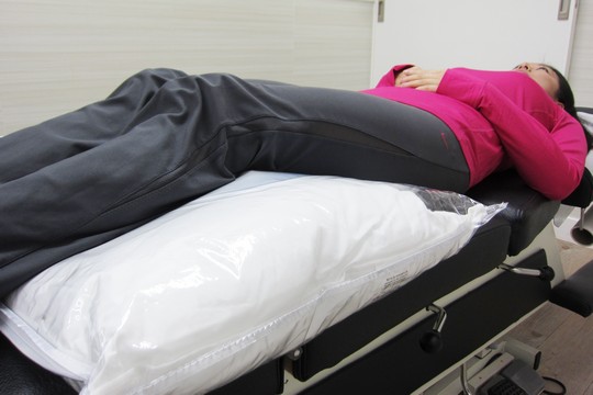 王俊華脊醫指出,仰睡時放一個小枕頭在雙膝蓋下方,令雙膝微曲,便可放鬆大腿後方、臀部和腰部的肌肉,腰部亦會比較容易緊貼床褥,得到承托。