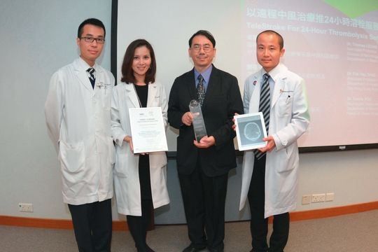腦中風是中國第一大殺手,每年造成逾150萬人死亡。在香港,每年有超過二萬名中風病人需要住院接受治療,當中有3,000多人死亡。而溶栓治療(俗稱通血管)就能有效治療缺血性腦中風,如病人在病發後的黃金3小時內接受治療,其康復機會可增加3成。香港中文大學內科及藥物治療學系與香港理工大學醫療科技及資訊學系合作,利用流動影像傳訊系統,協助腦神經科醫生在非辦工時間,遙距為中風病人作評估及診斷,以便進行急性中風溶栓治療。