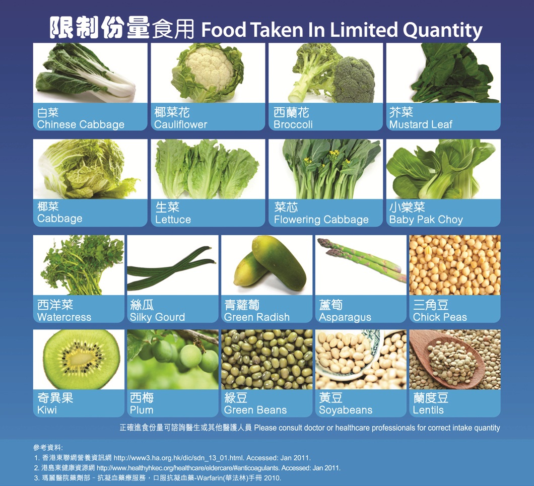 同時,病人亦應積極分辨那些食物與華法林相沖,例如可參考「關心你的心」網頁內文章: