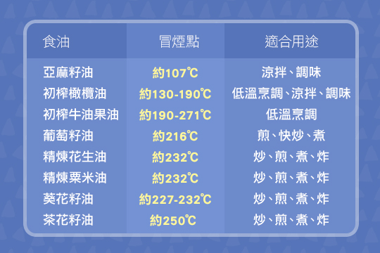現代人追求健康,越來越多人會用橄欖油、亞麻籽油、葵花籽油,葡萄籽油各種食用油。但每種油都有各自的特性,例如橄欖油不耐高溫,假如使用不當,反而會影響健康!看看這8種食用的資料一覽,以及營養師的選油小tips,再選擇適合的食用油吧!