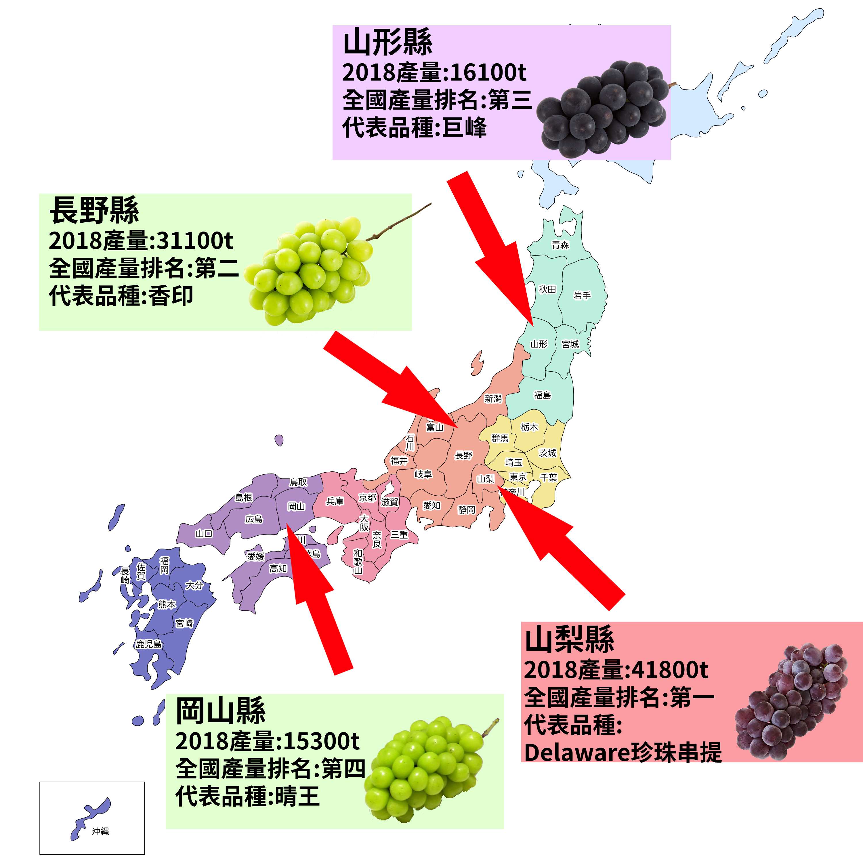 香印提子口感爽脆、甜度高達20、肉質豐厚彈牙、香氣濃郁、加上儲存和運輸性極佳,因此被視為提子中的上品,在日本不少地區,包括岡山縣、山梨縣、長野縣、香川縣及山形縣等地,都有種植香印提子,而當中就以山梨縣及長野縣出產的香印提子最為有名。