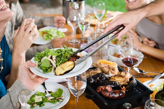 開始享用自助餐時,通常大家都會選擇較昂貴肉類,如燒牛肉、魚生、生蠔等。不過,進食12片魚生及3隻生蠔,即相等於7両肉類,這已超過一個50公斤女性建議每日所需的肉類(約4至6両)的標準,而這些肉類欠缺飽肚感,會令你往後吃得更多!