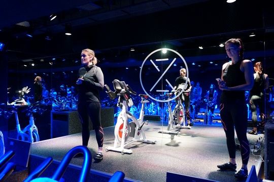 有別於一般健身室的光猛,XYZ的環境黑漆漆的,內有迷幻藍色暗燈,讓人以為自己身處Disco。加上教練利用節奏明快的音樂拍子來帶動踏單車的節奏,時而加快,時而減慢,還會逐漸把腳踏阻力調高,讓運動難度慢慢提升。有時候教練還會要求你屁股離開座位,凌空踏單車,維持一段時間後再重新坐下。這樣強弱交錯的運動方式(Interval Training),對燃燒脂肪十分有效。