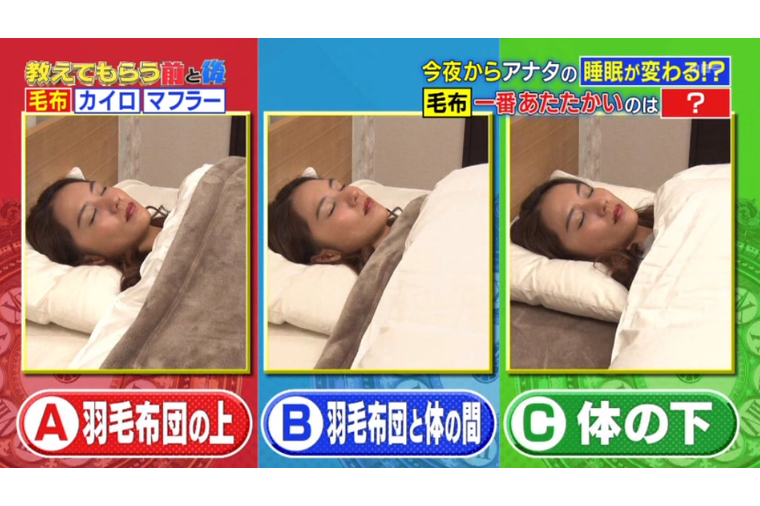 雖然香港冬天日子不算長,但一有冬季冷鋒到就氣溫急跌,加上早晚溫差大,市民仍然需要注意保暖以免傷風感冒纏身。不少朋友到冬天也會加被以助睡眠,大家可能不知道,原來體溫與冚被次序大有關係!日本節目《教えてもらう前と後》教路,蓋被次序不同會有近4℃差距,看看原因出在哪裡!