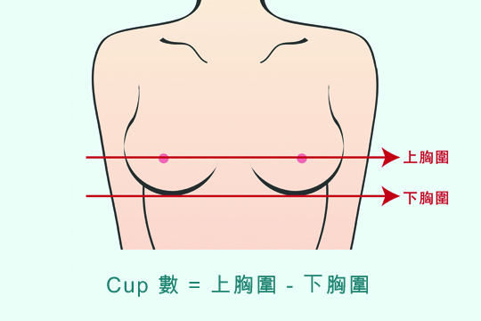 將上胸圍減去下胸圍數字便等於你的Cup數。