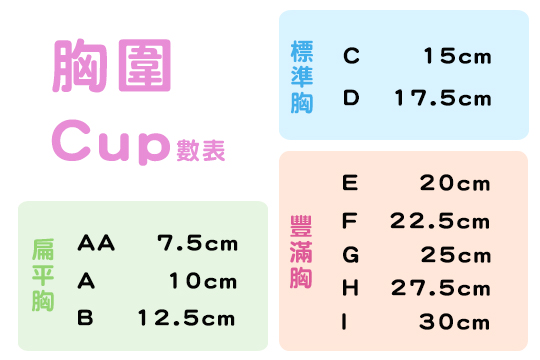 胸圍尺碼由下胸圍及杯位(俗稱Cup數)兩個部分組成,要準確量度,先要脫去胸圍,在乳點位圍繞一周並量度上胸圍數字(即是胸部最豐滿的地方),再於胃腩位置量度下胸圍數字(即胸部最底線)。