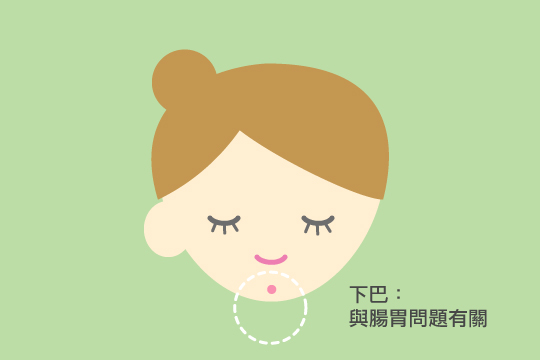 3. 下巴暗瘡:與腸胃問題有關。